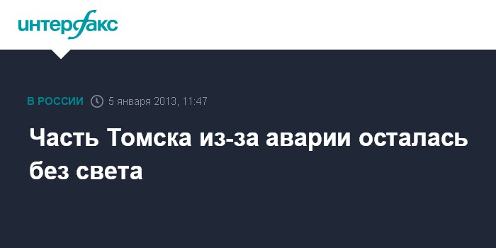 Томск. 5 января. INTERFAX.RU - Авария на электросетях стала причиной отключения электричества в нескольких микрорайонах на севере Томска, сообщили агентству "Интерфакс-Сибирь" в оперативно-дежурной службе города в субботу.