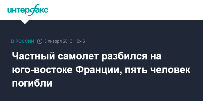 Париж. 5 января. INTERFAX.RU - Не менее пяти человек стали жертвами крушения частного самолета близ аэропорта города Гренобль на юго-востоке Франции, сообщает в субботу АФП.