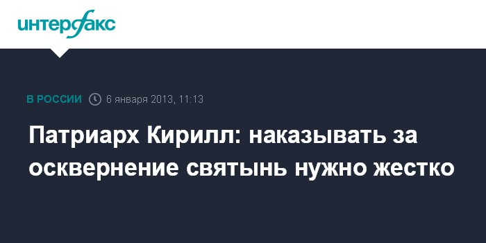 "Штраф в несколько сотен рублей за богохульные надписи на храме, мечети или синагоге говорит о том, что общество не вполне осознает важность защиты человеческого достоинства, в частности, защиты религиозных чувств верующих", - сказал патриарх Кирилл в интервью порталу "Интерфакс-Религия".
