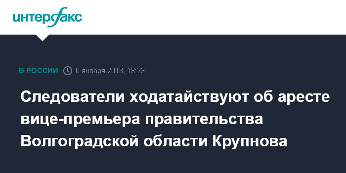 Москва. 6 января. INTERFAX.RU - Следствие ходатайствует об аресте зампредседателя правительства Волгоградской области Павла Крупнова, подозреваемого в получении крупной взятки, сообщил официальный представитель СКР Владимир Маркин.