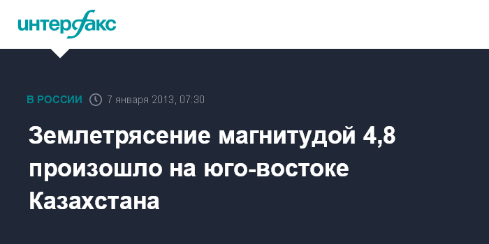 Алма-Ата. 7 января. ИНТЕРФАКС-КАЗАХСТАН - В Алма-Атинской области Казахстана (на юго-востоке) в 23:40 (аст) воскресенья произошло землетрясение магнитудой 4,8.