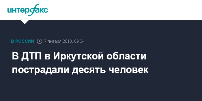 Москва. 7 января. INTERFAX.RU - В результате произошедшего в Иркутской области ДТП с участием двух легковушек пострадали десять человек.