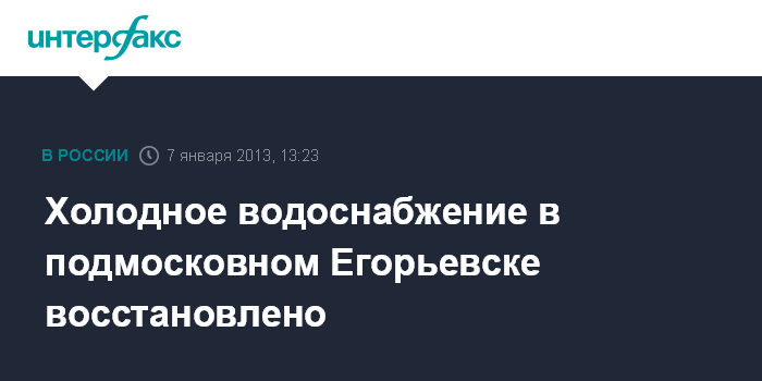 Москва. 7 января. INTERFAX.RU - Устранена авария, оставившая без холодной воды 2,5 тыс. жителей подмосковного Егорьевска.