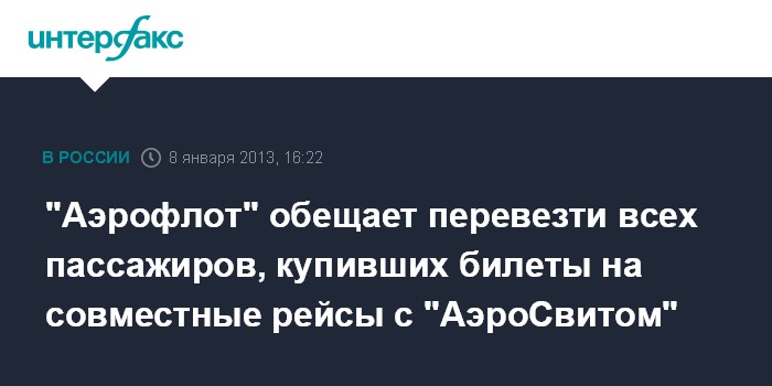 Он добавил, что с 5 января "Аэрофлот" "остановил продажи (на совместные рейсы с украинским авиаперевозчиком - ИФ) до выяснения ситуации с "АэроСвитом".