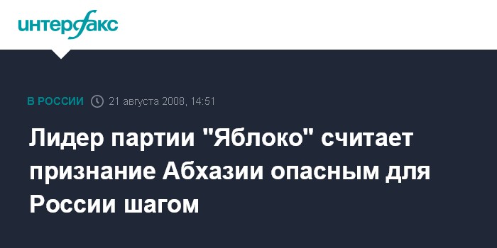 Москва. 21 августа. INTERFAX.RU - Партия "Яблоко" считает, что признание Москвой независимости Абхазии и Южной Осетии создаст опасные последствия для территориальной целостности самой России.