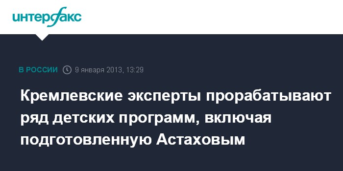 Кремлевские эксперты прорабатывают ряд детских программ, включая подготовленную Астаховым