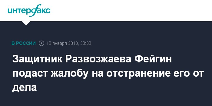 Москва. 10 января. INTERFAX.RU - Адвокат оппозиционера Леонида Развозжаева Марк Фейгин обжалует свой отвод от участия в уголовном деле. "Конечно, я буду обжаловать это в суде. Однако перспективы печальные. Меня часто упрекают в пессимизме, но я смотрю фактам в лицо", - сообщил "Интерфаксу" Фейгин.