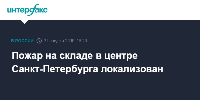 Санкт-Петербург. 21 августа. INTERFAX.RU - Локализован пожар на складе в центре Петербурга, сообщил "Интерфаксу" представитель Главного управления МЧС по городу.