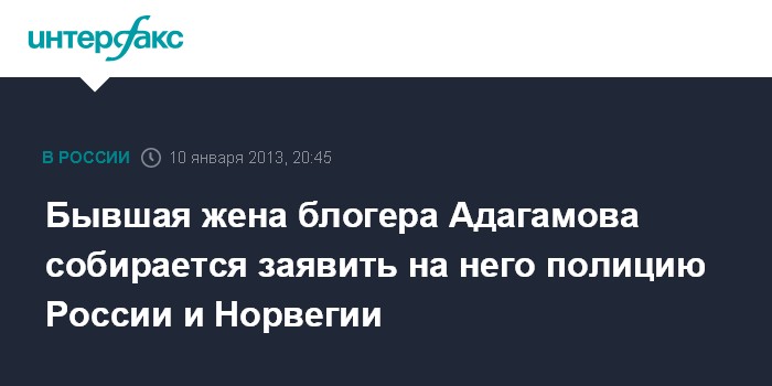 Москва. 10 января. INTERFAX.RU - Бывшая жена популярного российского блогера Рустема Адагамова Татьяна Дельсаль, обвинившая экс-супруга в надругательстве над несовершеннолетней девочкой, заявила, что обратится в правоохранительные органы России и Норвегии.