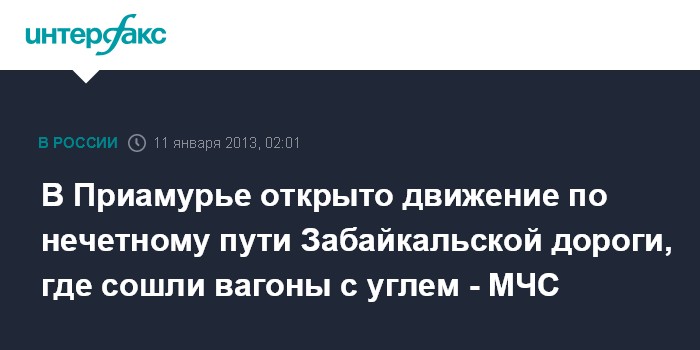 Владивосток. 11 января. ИНТЕРФАКС - ДАЛЬНИЙ ВОСТОК - В Магдагачинском районе Амурской области, где в ночь на пятницу сошли вагоны с углем, продолжаются аварийно-восстановительные работы на железнодорожных путях.