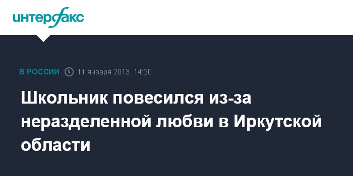 Школьник повесился из-за неразделенной любви в Иркутской области