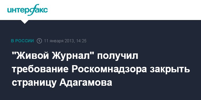 "Живой Журнал" получил требование Роскомнадзора закрыть страницу Адагамова