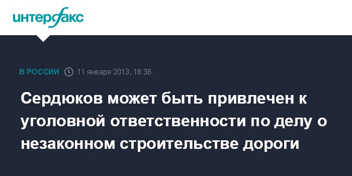 Сердюков может быть привлечен к уголовной ответственности по делу о незаконном строительстве дороги