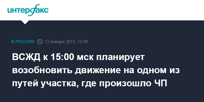 ВСЖД к 15:00 мск планирует возобновить движение на одном из путей участка, где произошло ЧП