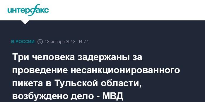 Три человека задержаны за проведение несанкционированного пикета в Тульской области, возбуждено дело - МВД