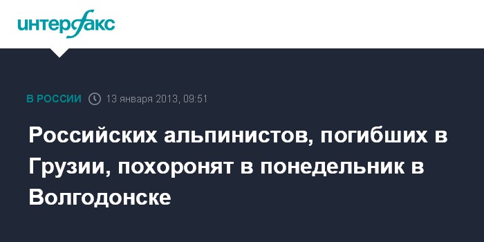 Российских альпинистов, погибших в Грузии, похоронят в понедельник в Волгодонске