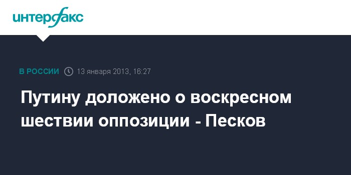 Путину доложено о воскресном шествии оппозиции - Песков