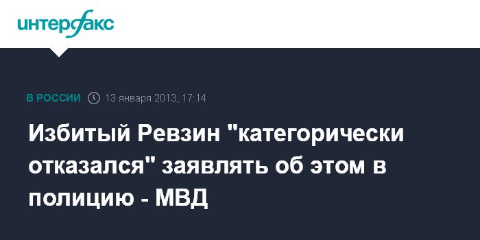 Избитый Ревзин "категорически отказался" заявлять об этом в полицию - МВД
