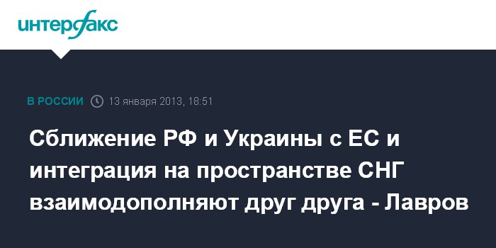 Сближение РФ и Украины с ЕС и интеграция на пространстве СНГ взаимодополняют друг друга - Лавров