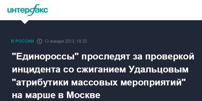 "Единороссы" проследят за проверкой инцидента со сжиганием Удальцовым "атрибутики массовых мероприятий" на марше в Москве