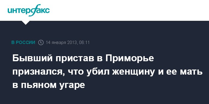Владивосток. 14 января. ИНТЕРФАКС-ДАЛЬНИЙ ВОСТОК - Житель Приморья, задержанный по подозрению в двойном убийстве, сознался в совершенном преступлении.