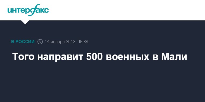 "Того направит в Мали примерно 500 солдат. Мы готовимся к этому. Скоро эти военные отправятся на задание", - сказал журналистам на условиях анонимности один из военачальников в Того.