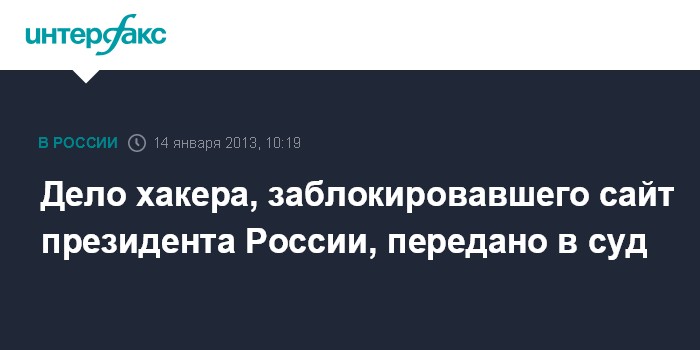 Красноярск. 14 января. INTERFAX.RU - Суд в Красноярском крае рассмотрит дело хакера, который в 2012 году провел атаку на сайт президента РФ, сообщает пресс-служба УФСБ России по региону в понедельник.