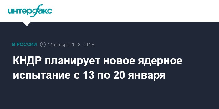 Вашингтон. 14 января. INTERFAX.RU - Власти Северной Кореи планируют провести новое, третье по счету ядерное испытание с 13 по 20 января, сообщила в субботу американская газета Nation со ссылкой на источник в правительстве Южной Кореи.
