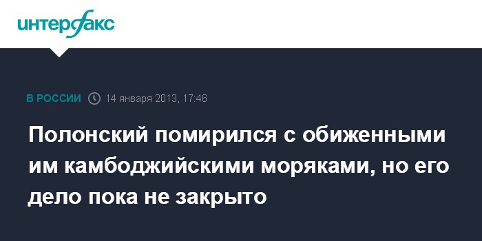 Полонский помирился с обиженными им камбоджийскими моряками, но его дело пока не закрыто