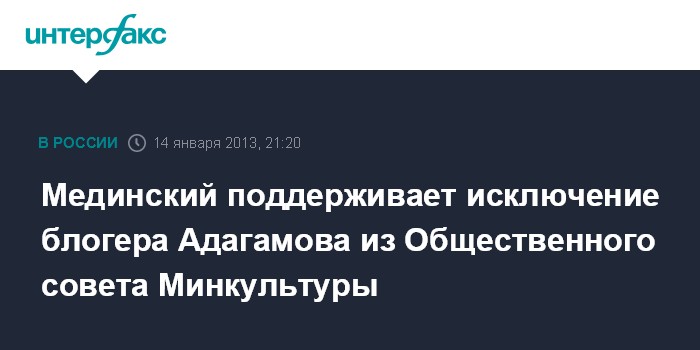 Мединский поддерживает исключение блогера Адагамова из Общественного совета Минкультуры