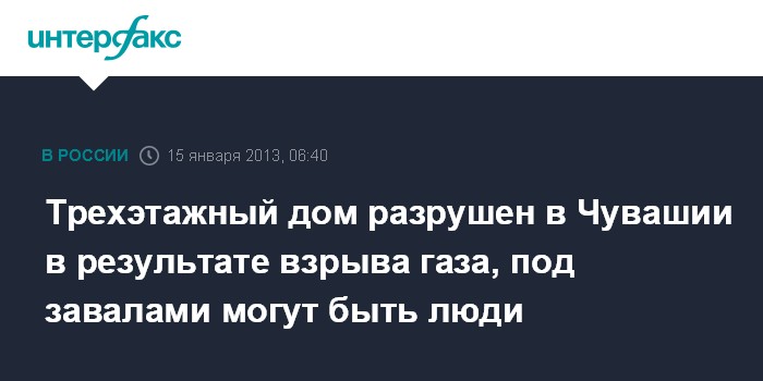 В свою очередь в управлении информации МЧС РФ «Интерфаксу» уточнили, что в результате взрыва бытового газа в поселке Тувси под завалами могут оставаться два человека, еще шестеро спасены. Ведутся работы по разбору завалов.