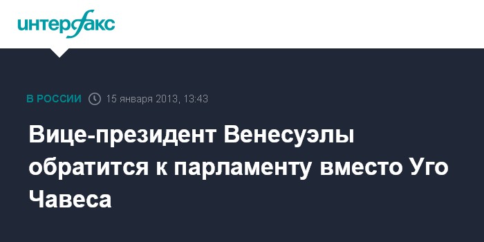 Каракас. 15 января. INTERFAX.RU - Вице-президент Венесуэлы Николас Мадуро намерен во вторник выступить с так называемым "обращением президента" перед Национальной Ассамблеей вместо отсутствующего по состоянию здоровья президента страны Уго Чавеса, сообщила государственная радиостанция Венесуэлы.