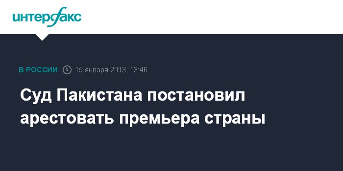 Исламабад. 15 января. INTERFAX.RU - Верховный суд Пакистана издал постановление об аресте премьер-министра страны Раджи Первеза Ашрафа, сообщает во вторник местное телевидение.