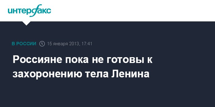Так, если в конце 2011 года 40% россиян заявляли, что тело В.Ленина должно быть перезахоронено на Волковом кладбище в Санкт-Петербурге, где покоятся его мать и сестры, то теперь таких граждан стало уже 34%, сообщили "Интерфаксу" социологи "Левада-Центра" по результатам всероссийского опроса, проведенного в декабре минувшего года.