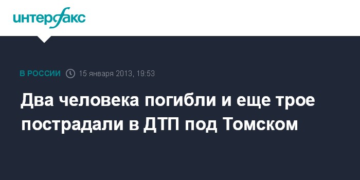 В результате ДТП погибли два пассажира ВАЗа - мужчина 1956 г.р. и женщина 1979 г.р. Кроме того, травмы получили три человека, в том числе девушки 15 и 17 лет. Пострадавшие доставлены в медучреждения Томска.