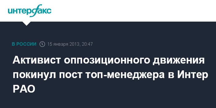 Активист оппозиционного движения покинул пост топ-менеджера в Интер РАО