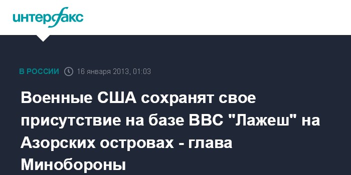 Лиссабон. 16 января. ИНТЕРФАКС - Армия США намерена продолжить использовать португальскую военно-воздушную базу "Лажеш" на Азорских островах в Атлантическом океане, заявил во вторник журналистам в Лиссабоне министр обороны США Леон Панетта.