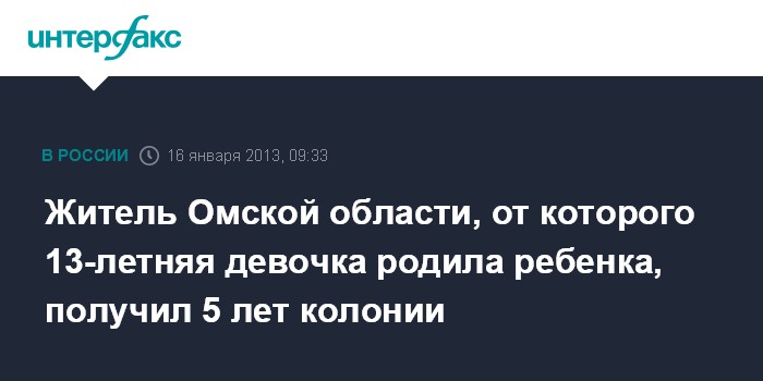 Омск. 16 января. INTERFAX.RU - Одесский районный суд Омской области вынес обвинительный приговор местному жителю, от которого 13-летняя девочка родила ребенка, сообщает пресс-служба облпрокуратуры.