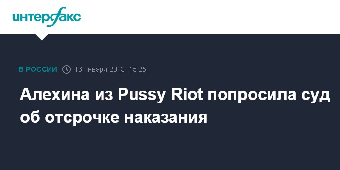 Пермь. 16 января. INTERFAX.RU - Осужденная на два года лишения свободы участница группы Pussy Riot Мария Алехина попросила предоставить ей отсрочку отбытия наказания в связи с тем, что у нее есть маленький ребенок.