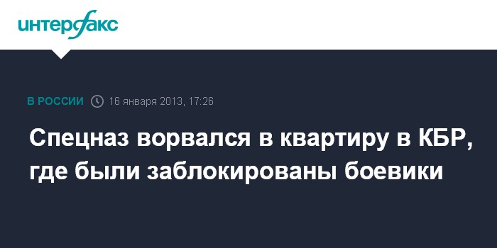 Ростов-на-Дону. 16 января. INTERFAX.RU - Бойцы спецназа, преодолев ожесточенное сопротивление бандитов, заблокированных в квартире в Тырныаузе, смогли зайти в нее, сообщили "Интерфакс" в правоохранительных органах Кабардино-Балкарии.