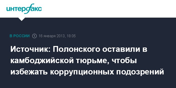 Источник: Полонского оставили в камбоджийской тюрьме, чтобы избежать коррупционных подозрений
