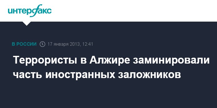 Париж. 17 января. INTERFAX.RU - Вооруженные исламисты, удерживающие в заложниках в Алжире группу иностранцев, заставили некоторых из них надеть пояса со взрывчаткой, сообщает в четверг французский телеканал France 24.