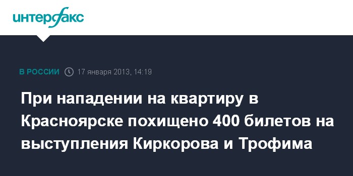 При нападении на квартиру в Красноярске похищено 400 билетов на выступления Киркорова и Трофима