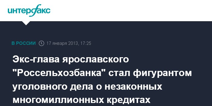 Экс-глава ярославского "Россельхозбанка" стал фигурантом уголовного дела о незаконных многомиллионных кредитах