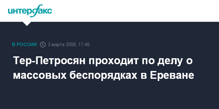 Тер-Петросян проходит по делу о массовых беспорядках в Ереване