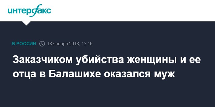 Москва. 18 января. INTERFAX.RU - Убийство предпринимателя и его дочери в конце прошлого года в подмосковной Балашихе организовал муж убитой женщины, не пожелавший делить с ней имущество при разводе, его подельники причастны также к еще нескольким убийствам в 2012 г., сообщила официальный представить подмосковного главка СКР Ирина Гуменная.