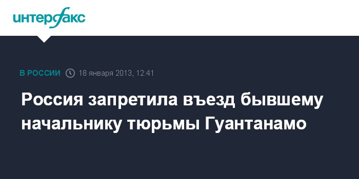 Москва. 18 января. INTERFAX.RU - Россия не выдала визу на въезд в страну одному из высокопоставленных американских военных, который был начальником скандально известной военной тюрьмы Гуантанамо, сообщил "Интерфаксу" в пятницу первый замминистра иностранных дел РФ Андрей Денисов.