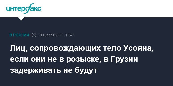 Лиц, сопровождающих тело Усояна, если они не в розыске, в Грузии задерживать не будут