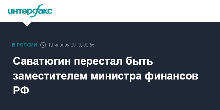 Москва. 19 января. INTERFAX.RU - Алексей Саватюгин освобожден от должности замглавы Минфина РФ. Соответствующее постановление от 17 января за подписью премьер-министра Дмитрия Медведева размещено в субботу на сайте правительства. В нем не содержится каких-либо мотивировок или дополнительных сведений.