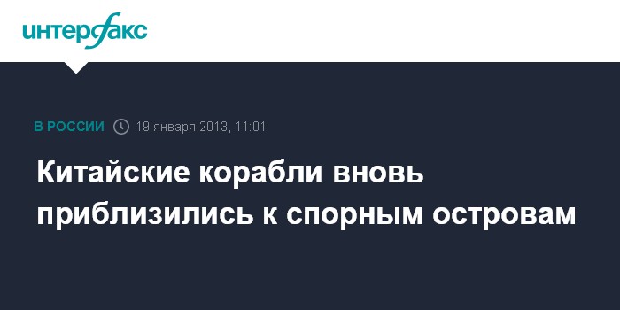 Токио. 19 января. INTERFAX.RU - Три патрульных корабля ВМС Китая вошли в территориальные воды Японии вблизи спорных островов Сенкаку (кит. Дяоюйдао), сообщили в субботу в японской береговой охране. К китайским кораблям был отправлен корабль береговой охраны, который потребовал, чтобы они срочно покинули японские территориальные воды.
